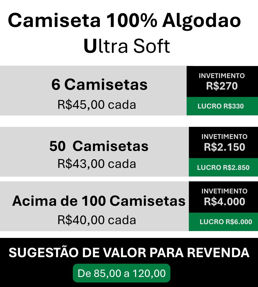 PEDIDO MÍNIMO 6 CAMISETAS VARIADAS DA MESMA CATEGORIA